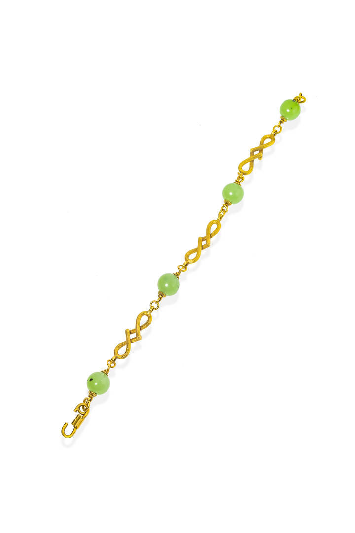 Bracciale in oro giallo, firmato "Cirio-Torino", composto da quattro sfere di giadeite del diam. di 10.
