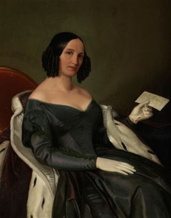 RACCHETTI PIETRO Crema 1809-1853 Presunto ritratto della moglie dell'Ingegner Albino Parea Olio su tela 99,5x75 cm Firmato in basso a sinistra "Racchetti Fece" Oil on canvas Signed lower left