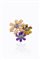 in oro bianco, composta da tre fiori con petali in corallo rosa secundum taglio cabochon; ametiste e citrini taglio ovale cabochon; diamanti taglio 8/8 per totali ct 0,70 ca