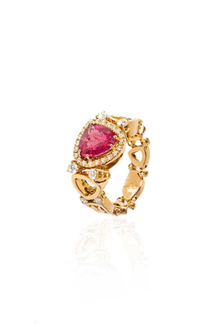 in oro rosa, firmato "Chantecler", modello "Divina", con al centro tormalina taglio a cuore e diamanti taglio brillante per totali ct 0,20 ca