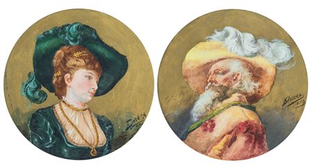 tempere acquerellate su cartoncino circolare diametro cm. 30, firme e anno sulla destra.