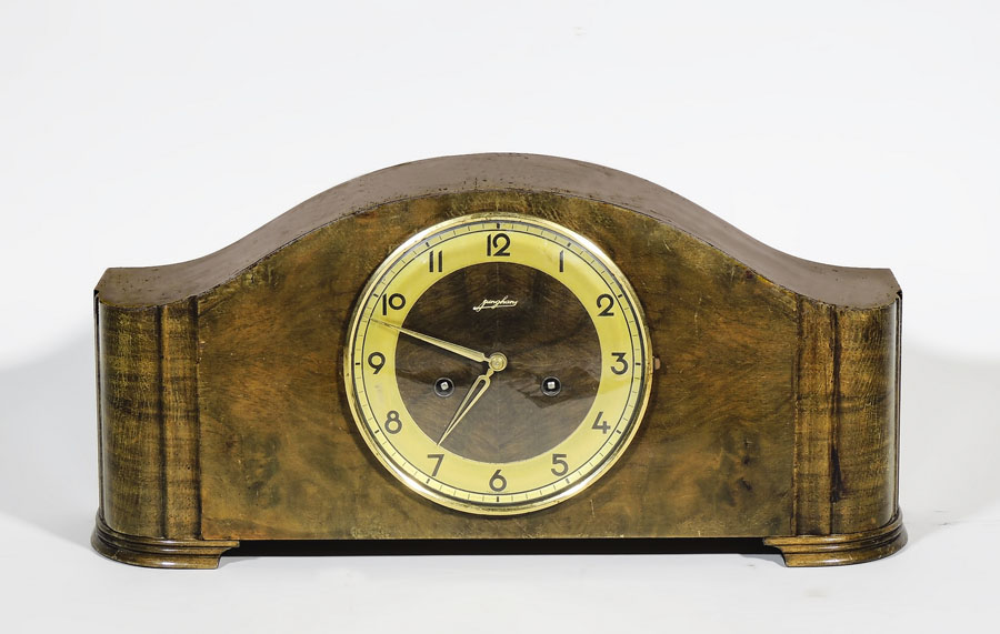 OROLOGIO DA MENSOLA IN RADICA DI NOCE E ROVERE prima metà del XX secolo da revisionare h cm 23x48x14 BURR WALNUT AND OAK MANTEL CLOCK