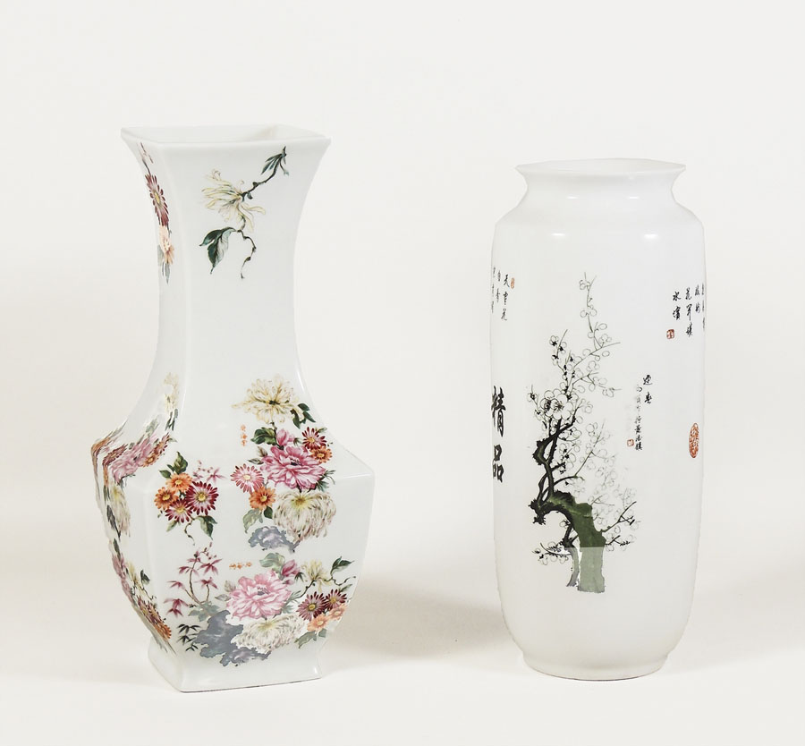 DUE VASI IN PORCELLANA ORIENTALE di cui uno di forma a balaustro stilizzato, decorato con motivi floreali h cm 36,5, h cm 34 TWO ORIENTAL PORCELAIN VASES
