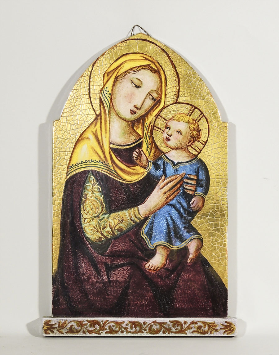 ALVARO CARTEI (1911-1995) Placca in terracotta policroma di forma centinata, dipinta con Madonna con Bambino su fondo oro, firmata cm 55x35 PAINTED TERRACOTTA PLAQUE
