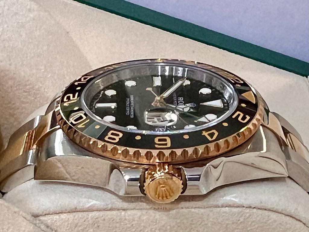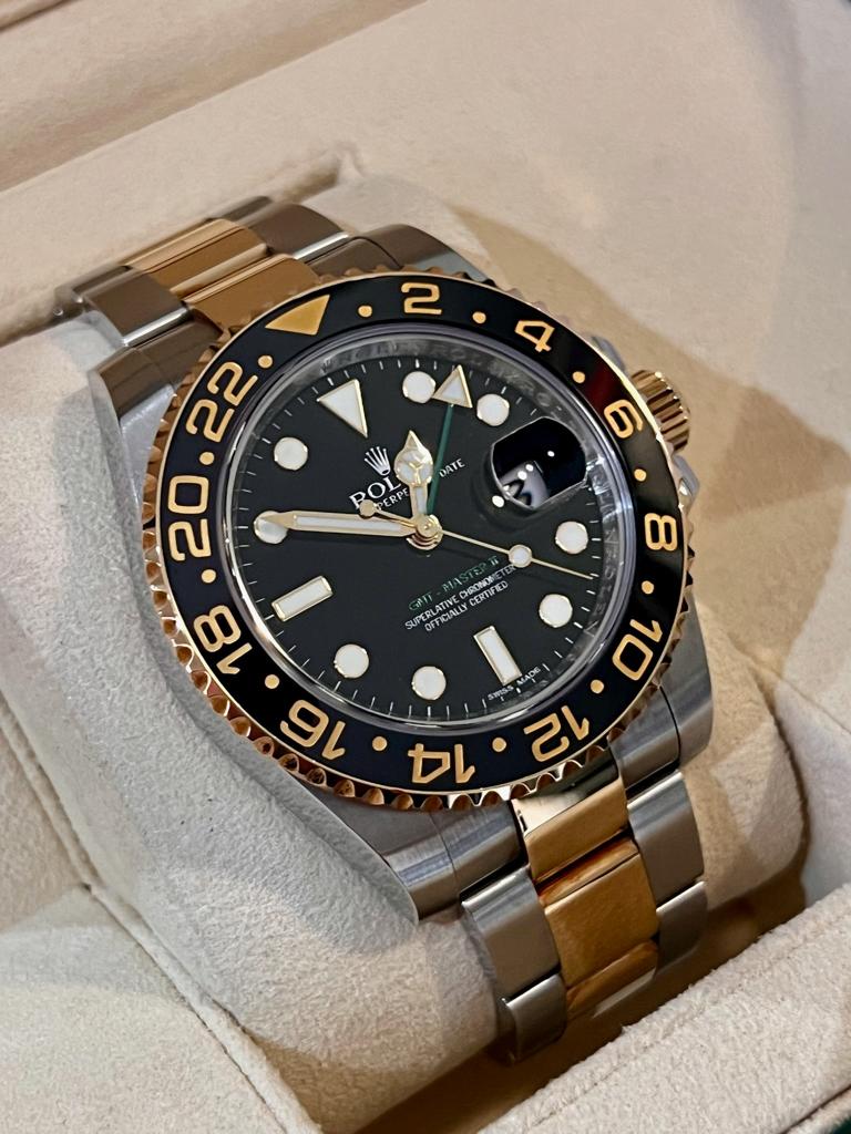 Marca Rolex Modello (Orologio) GMT-Master II Numero di referenza 116713LN Carica Automatico Materiale della cassa Oro/Acciaio Materiale cinturino Oro/acciaio Anno di produzione 2016 Condizione Ottimo Corredo documenti originali Rolex, no box Materiale della cassa Oro/Acciaio Diametro 40 mm Impermeabile 10 ATM Materiale lunetta Ceramica Vetro Vetro zaffiro Quadrante Nero Numeri sul quadrante Senza numeri Cinturino Materiale cinturino Oro/acciaio Colore cinturino Oro/acciaio Chiusura Déployante Materiale chiusura Oro/Acciaio Funzioni Data, GMT - COMMISSIONE D’ASTA 25%