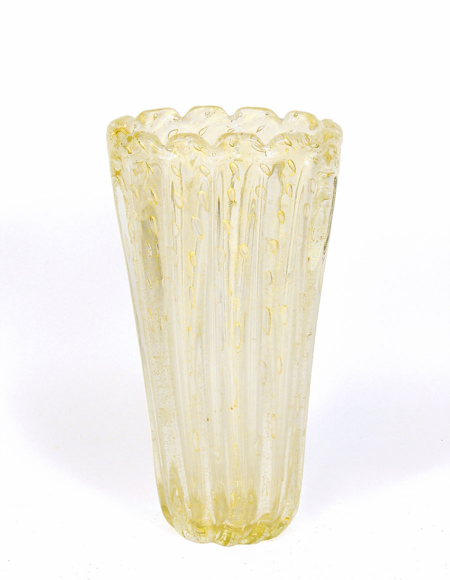 VASO IN VETRO SOFFIATO Murano, Barovier e Toso con inclusioni di bolle e...
