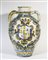 VASO AD ORCIO IN MAIOLICA POLICROMA Caltagirone, fine del XVIII/inizio del XIX secolo dipinto con stemma dei Cavalieri di Malta, entro riserva sagomata nei toni del blu, verde e giallo h cm 57 PAINTED MAJOLICA POT CALTAGIRONE, LATE 18TH/EARLY 19TH CENTURY