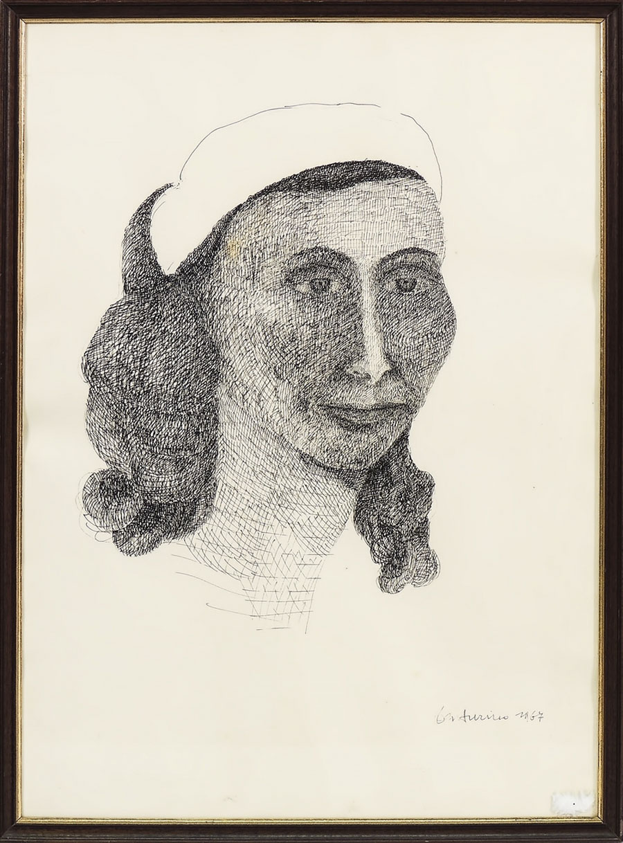 VENTURINO VENTURI (1918-2002) Ritratto femminile china su carta, firmato e datato 1967, in cornice cm 70x50 FEMALE PORTRAIT, INDIAN INK ON PAPER