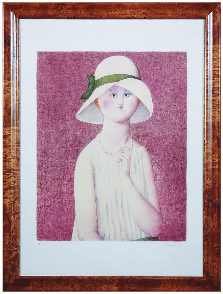 ANTONIO BUENO (1918-1984) Ritratto di donna con cappello litografia, prova d'artista, firmata, in cornice cm 50x40 PORTRAIT OF A WOMAN WITH HAT, SILKSCREEN PRINT ON PAPER