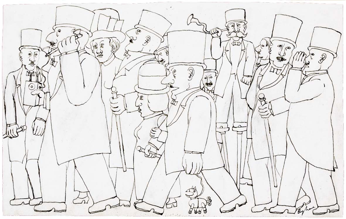BORGHESE FRANZ Roma 1941 Corteo disegno a china su carta 22x38 cm firma in basso a destra certificato di autenticità e provenienza a cura di Selfart Roma