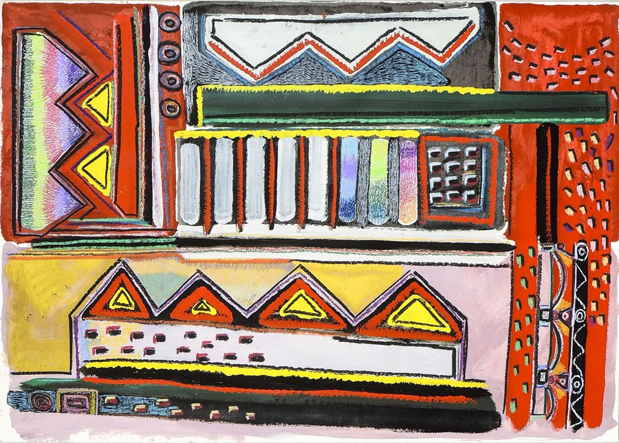 GIULIANO AZZONI (1953-2011) Città mixed media su cartoncino cm 70x100 TOWN VIEW, MIXED MEDIA ON CARDBOARD