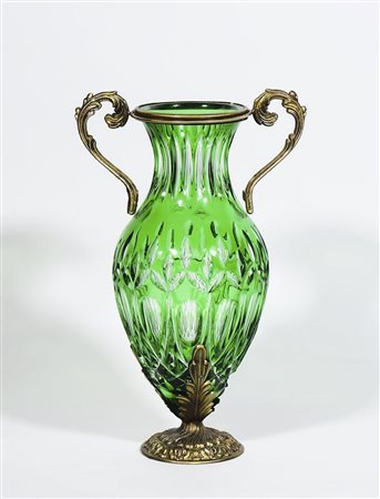 VASO BIANSATO IN CRISTALLO COLOR VERDE rilegato in metallo dorato h cm 35...