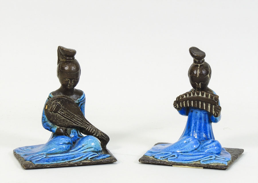 COPPIA DI FIGURE IN GRES Manifattura Zaccagnini, Anni Trenta/Quaranta raffiguranti due geishe musicanti h cm 22,5 PAIR OF GRES FIGUER, ZACCAGNINI MANUFACTORY, 1930-1940S