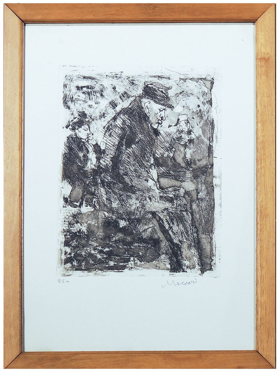 MINO MACCARI (1898-1989) Composizione con personaggi incisione, prova d'autore, firmata, in cornice cm 32x24 COMPOSITION WITH FIGURES, ENGRAVING