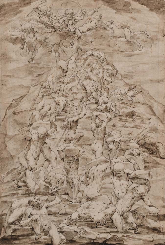 Scuola olandese del XVII secolo () Caduta dei Giganti Inchiostro e acquerello...