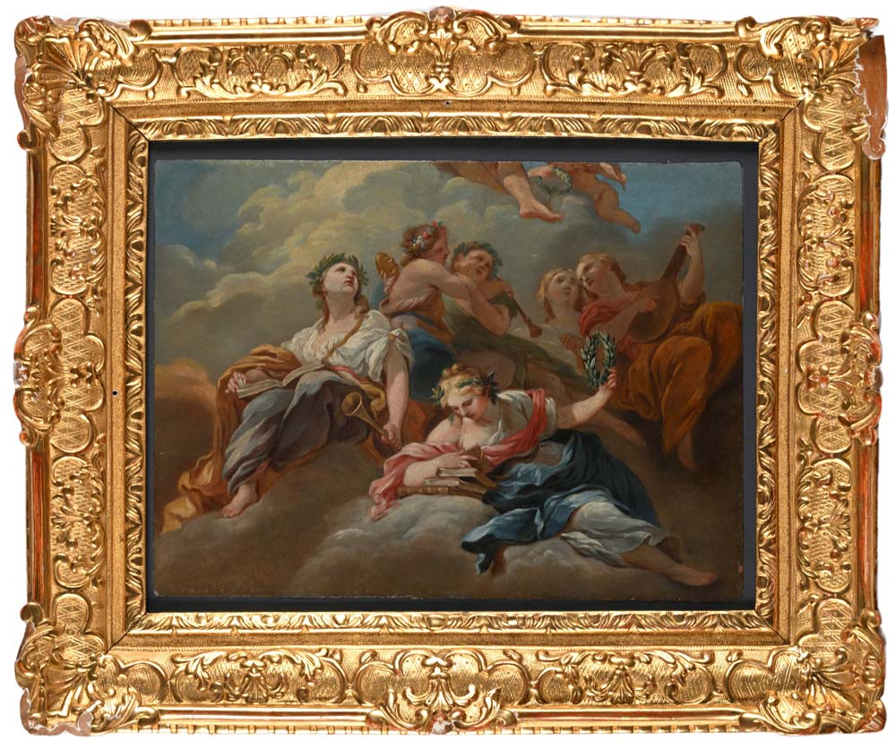 Studio per l'Apoteosi di Ercole olio su carta mm 320x430 - con cornice cm 53x63 Si tratta con ogni probabilità dello studio preparatorio per l’importante commissione che François Le Moyne realizzò durante il regno di Luigi XV, tra il 1731 e il 1736, per uno dei soffitti del Grand Appartement du Roi nella Reggia di Versailles.
