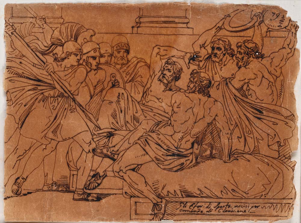 Gli Efori di Sparta uccisi per comando di Cleomene Inchiostro nero su carta mm 160x210 - con passe-partout cm 29x36 Studio preparatorio per l'incisione conservata oggi presso l'Istituto Centrale per la Grafica di Roma (Inv n. S-FN24835)