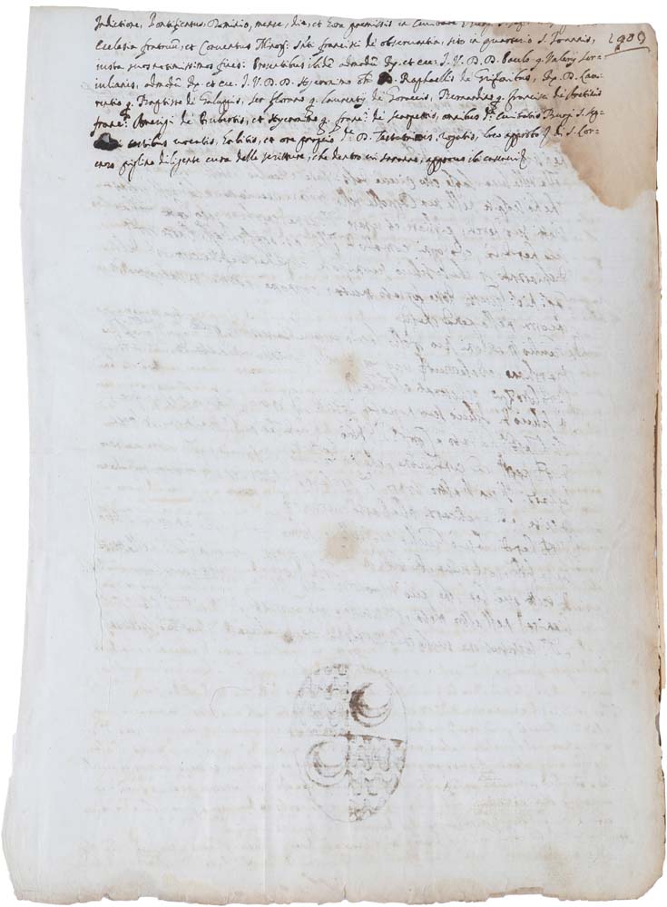Lettera con scudo della famiglia Vitelli China su carta mm 287x211