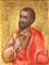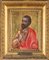 San Bartolomeo Tempera e oro su tavola cm 29x22 - con cornice cm 43x35 La piccola tavola proviene dal registro degli Apostoli di un’iconostasi, struttura liturgica che nelle chiese orientali separava il coro dalle navate e che veniva ornata con immagini sacre disposte su architravi e colonne. La figura, identificabile con ogni probabilità come San Bartolomeo, è raffigurata con un’espressione austera e i tratti regolari tipici della sua iconografia canonica, anche se priva di attributi specifici.