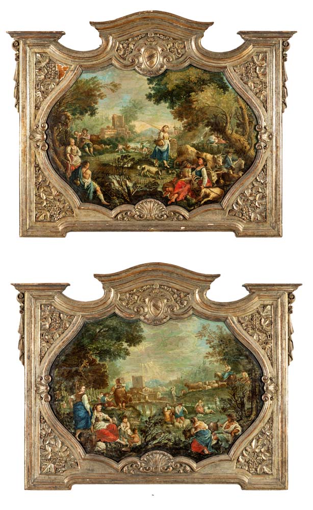 Coppia di paesaggi rococò olio su tavola cm 36x53,5 - con cornice cm 55x70 ciascuno collezione privata, Siena
