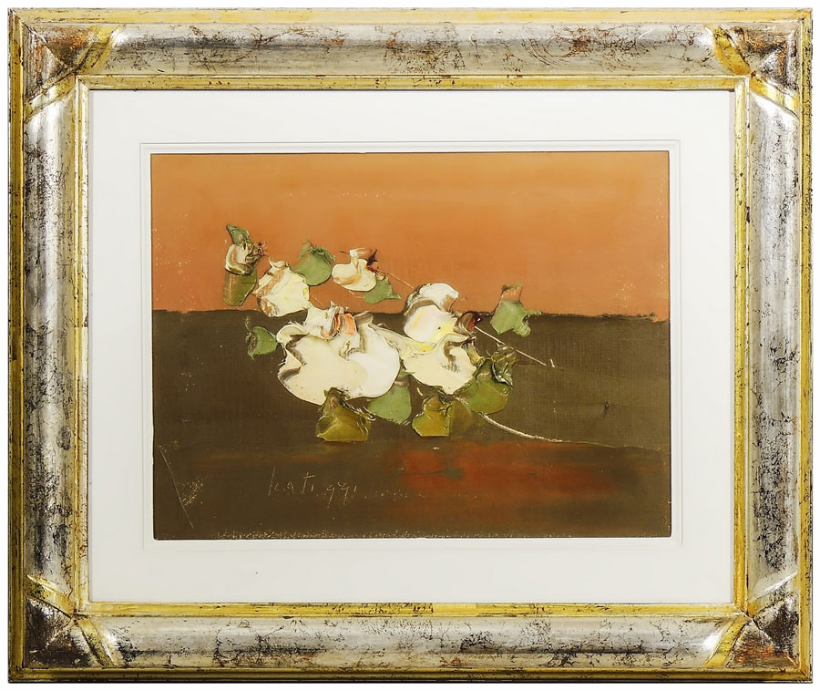 SERGIO SCATIZZI (1918-2009) Fiori 1970-71 olio su tela, firmato, in cornice cm 30x40 FLOWERS, OIL ON CANVAS
