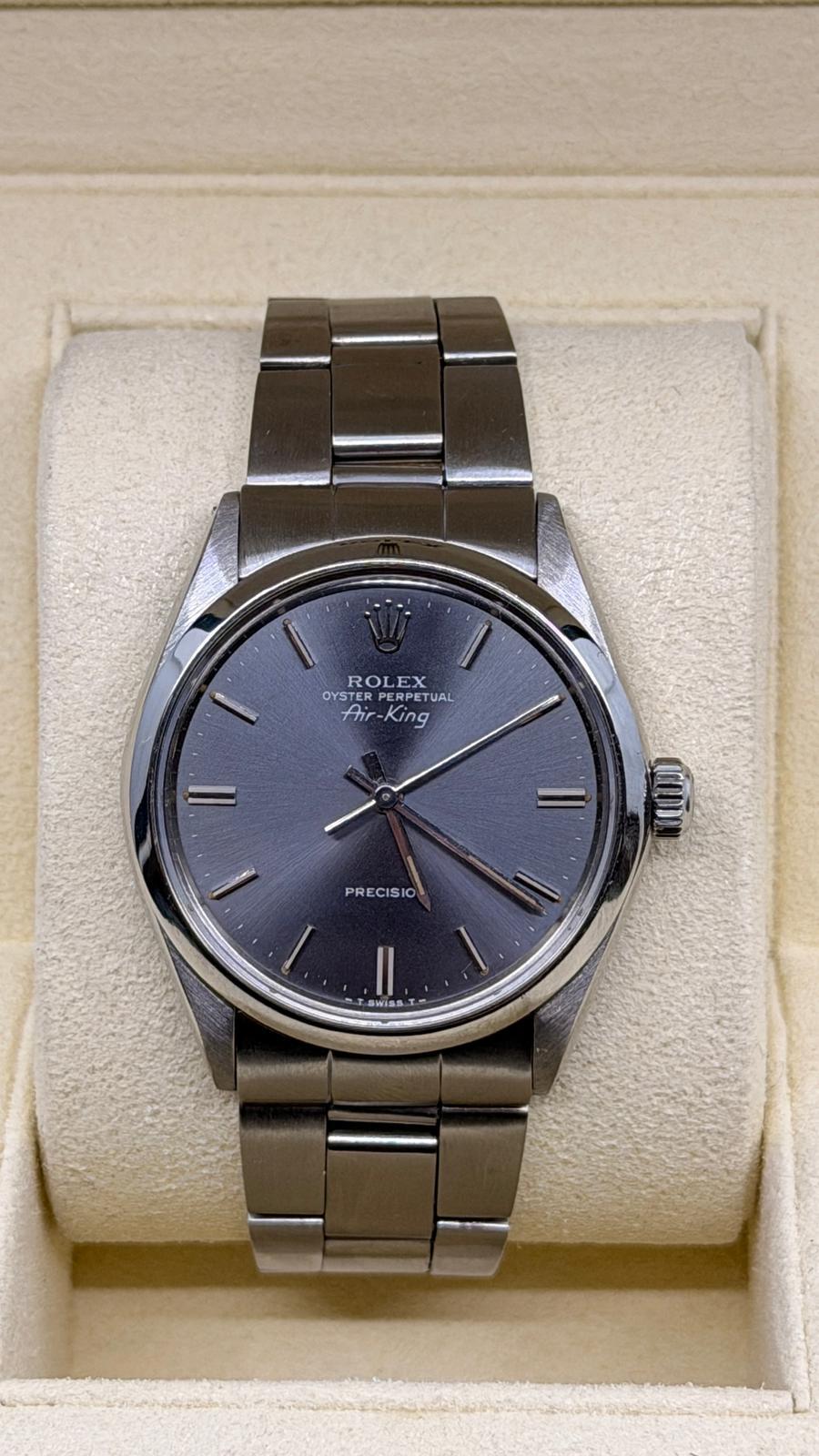 Marca Rolex Modello (Orologio) Air King Numero di referenza 5500 Carica Automatico Materiale della cassa Acciaio Materiale cinturino Acciaio Vetro plexiglas Senza scatola originale, senza documenti originali 1 anno di garanzia del negozio Diametro 34mm - COMMISSIONE D’ASTA 25%