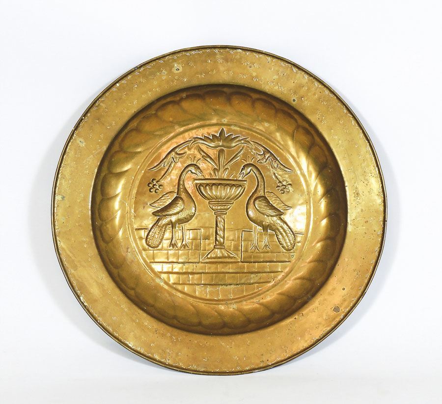 Lot 198 | GRANDE COPPA IN RAME sbalzata con figure di pavoni e motivi floreali diam cm...