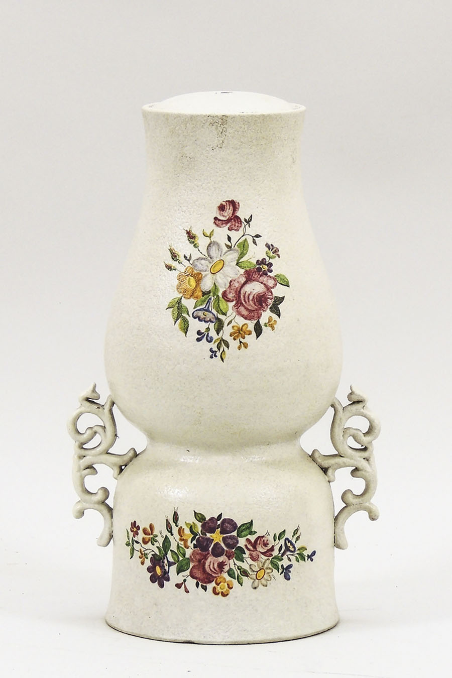 MARCELLO FANTONI (1915-2011) Base per lume in terracotta policroma forma a balaustro, dipita con motivi floreali nei toni del rosa, verde e giallo su fondo bianco, lieve difetto alla base h cm 34,5 PAINTED TERRACOTTA LAMP BASIS