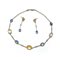 Faraone, Parure di collana e coppia di orecchini in oro, zaffiri e brillanti Oro bianco 750/000. Zaffiri blu, gialli e rosa in taglio ovale ct 37 ca. Peso complessivo gr 18,10. Collana lunchezza cm 39. Orecchini cm 4,5