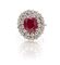 Anello in oro, rubino e brillanti Oro bianco 750/000. Diamanti in taglio rotondo brillante ct. 1,50 ca. Rubino in taglio ovale ct. 6,30. Peso complessivo gr. 9,80. Misura 17