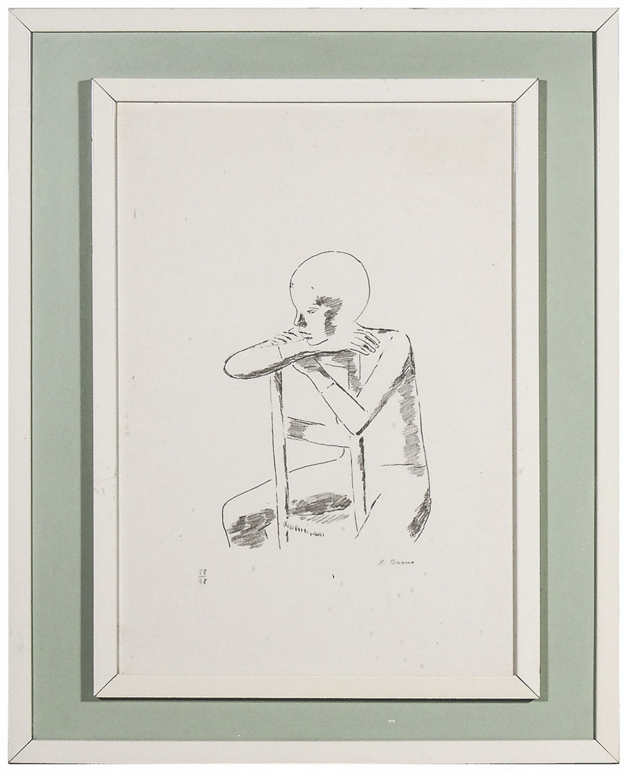 XAVIER BUENO (1915-1979) Figura seduta litografia, es 58/78, firmato, in cornice, difetti cm 49x34 SEATED FIGURE, LITHOGRAPH