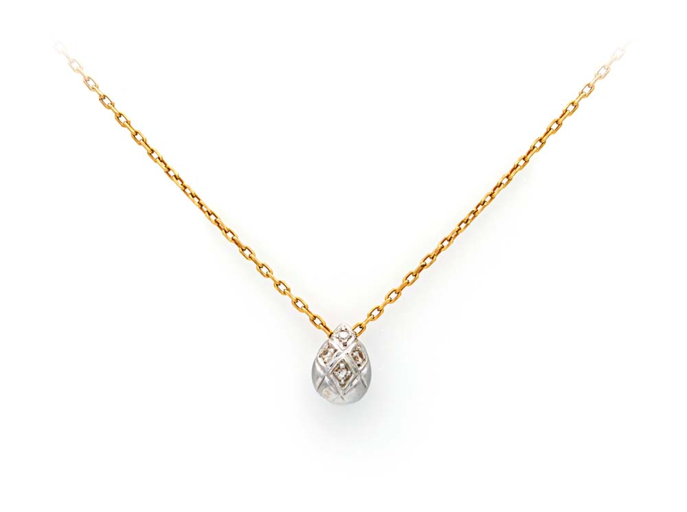 Pendente in oro e diamanti Oro giallo e bianco 750/000. Peso complessivo gr. 5. Lunghezza cm 52