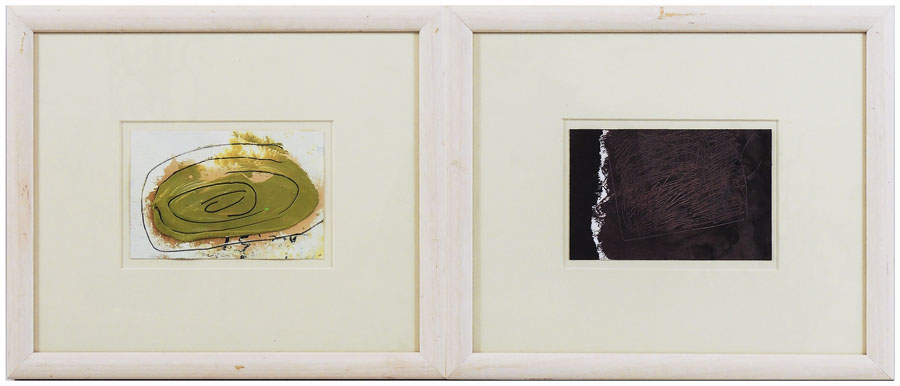 WALTER FUSI (1924-2013) Composizioni due dipinti a tecnica mista su carta, firmati, in cornice cm 9,5x14,5 circa (2) COMPOSITIONS, TWO MIXED MEDIA ON PAPER