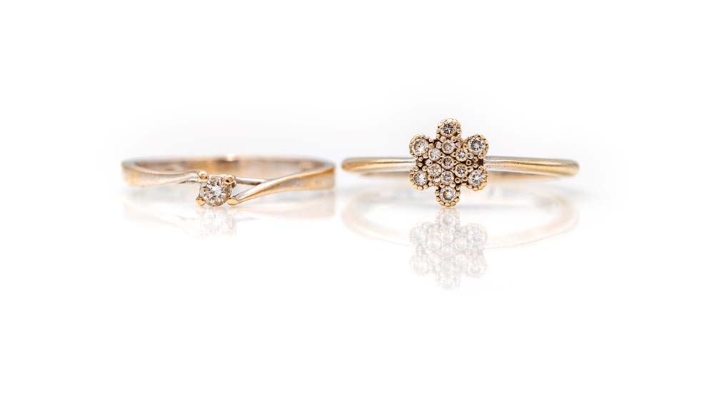 Coppia di anelli in oro e brillanti Oro bianco 750/000. Peso complessivo gr. 4,40 Misura 15