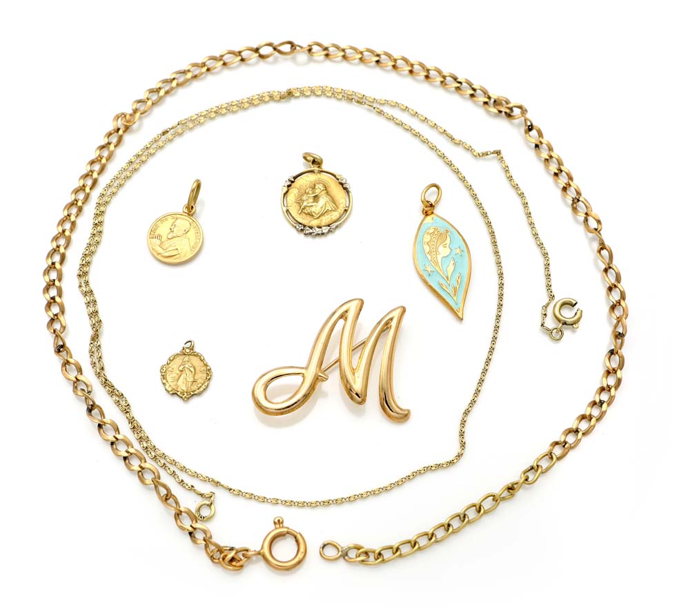 Lot 200 | Lotto di 7 oggetti in oro Oro giallo 750/000. Peso complessivo gr. 20,40