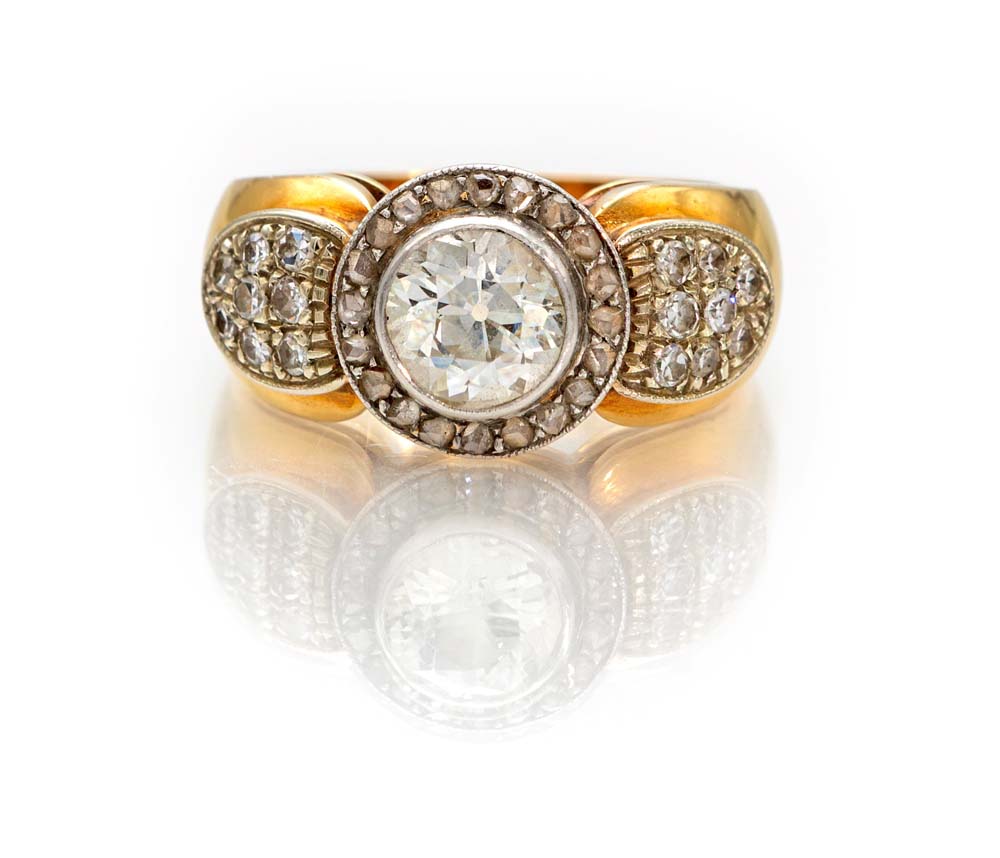 Lot 208 | Anello in oro, diamante solitario e brillanti Oro giallo e bianco 750/000....