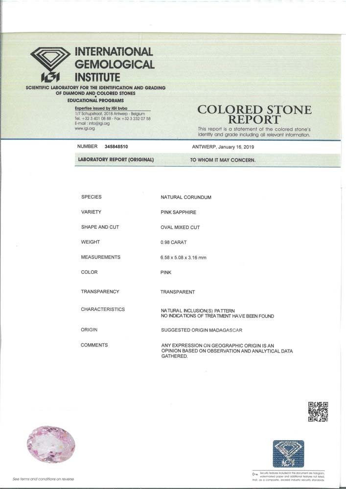 Collezione di tre zaffiri blu e rosa SENZA INDICAZIONE DI TRATTAMENTO TERMICO. Corredati di certificazioni gemmologiche IGI.
