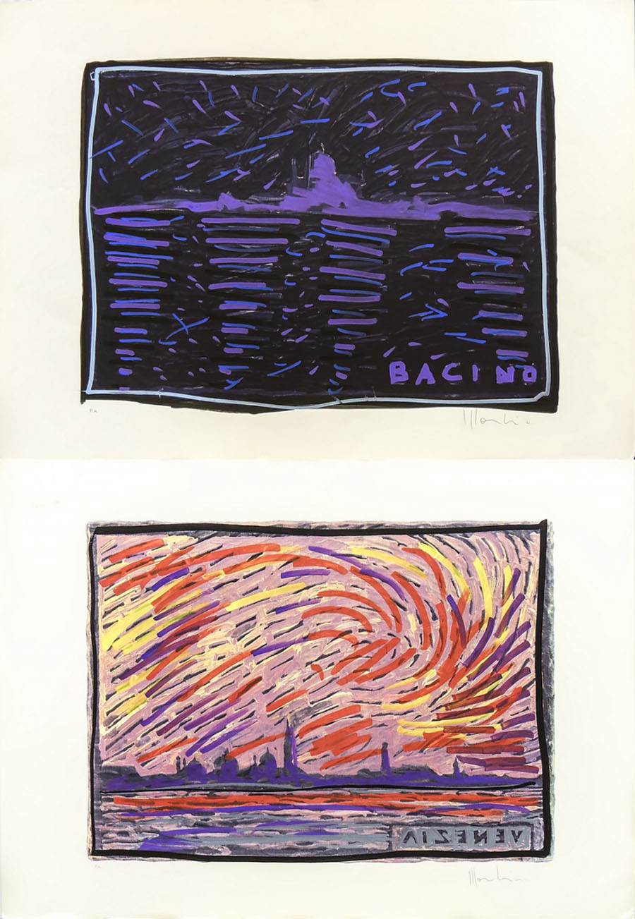 ALDO MONDINO (1938-2005) Venezia di tutti i colori 1986 serie di cinque stampe colorate ritoccate a pantone, prove d'artista, firmate cm 50x70 VENICE VIEW, FIVE COLOUR PRINTS WITH PANTONE RETOUCHES