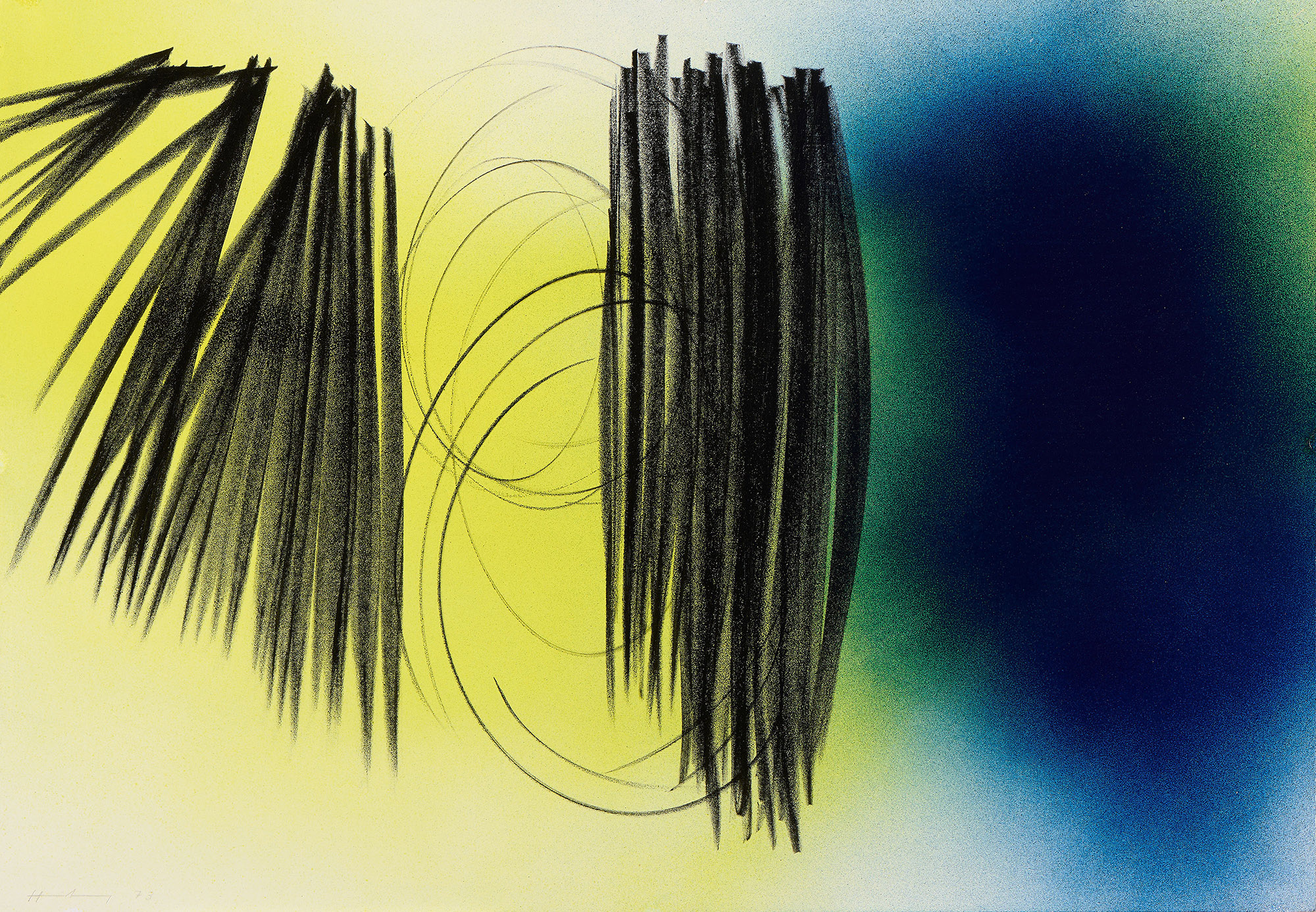 Firma e data in basso a sinistra: Hartung 73; titolo e scritta al verso: P1973-68 / fait le 17 août 73 / K483 / photo du 18/8/73.