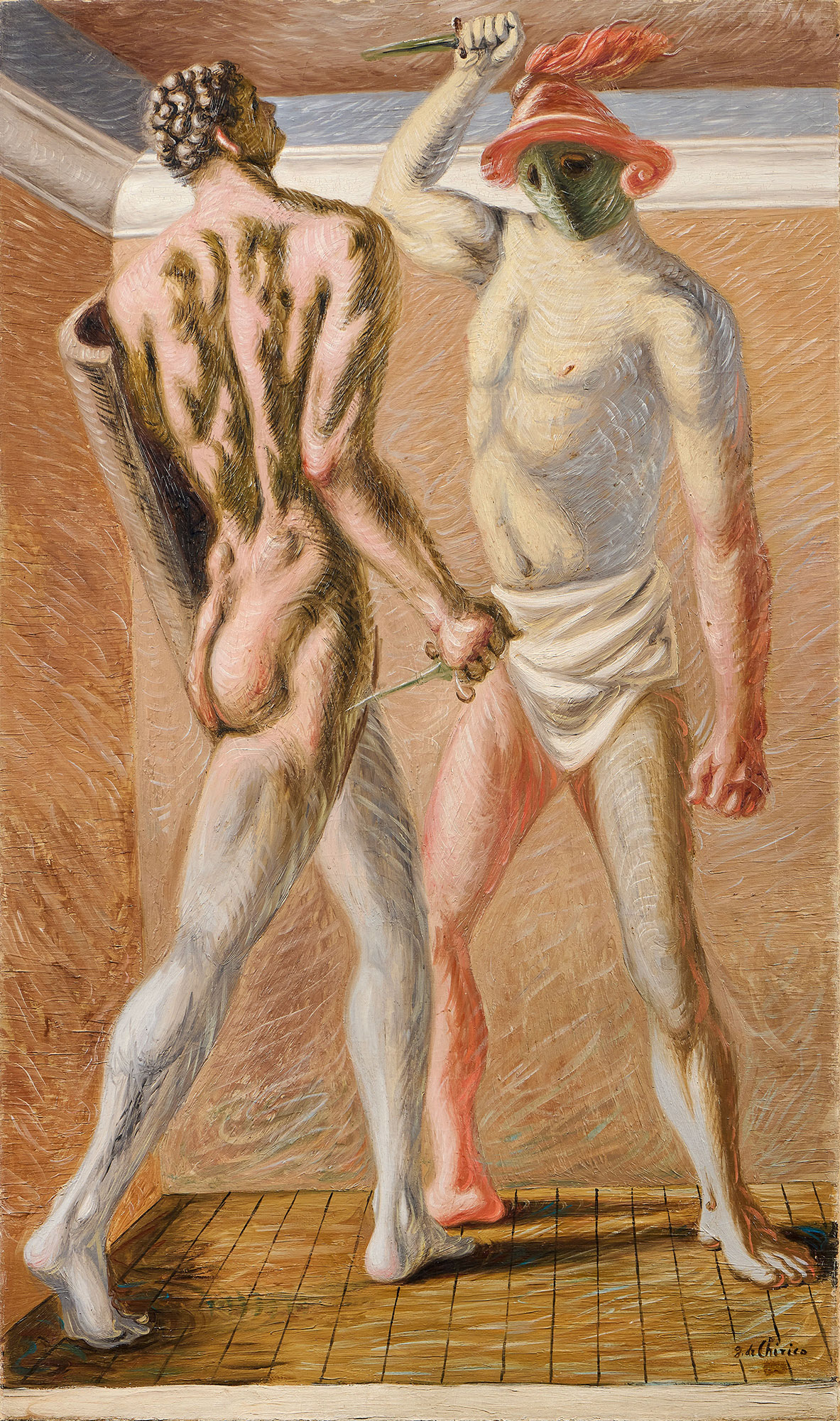 Giorgio de Chirico (Volos, 1888 - Roma, 1978) Gladiatori, 1928 Olio su tela,...