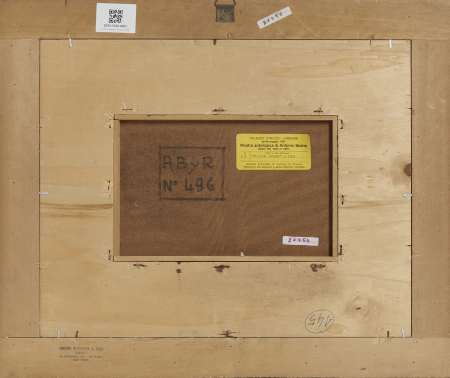 L'opera è accompagnata da certificato di archiviazione dell'Archivio Antonio Bueno a cura di Bianco Giovanni Battista