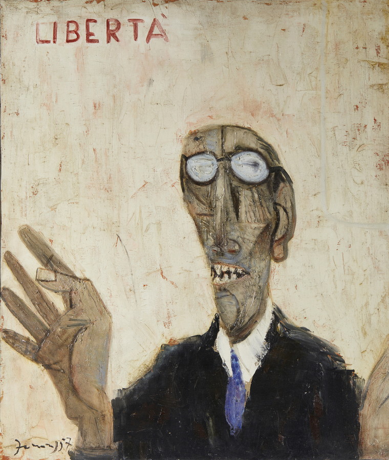 FERRONI GIANFRANCO (1927 - 2001) DISCORSO POLITICO . 1957. Olio su tela. Cm 59,50 x 70,00. firma e data