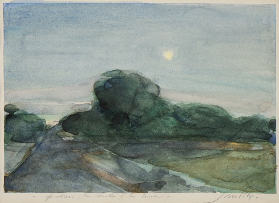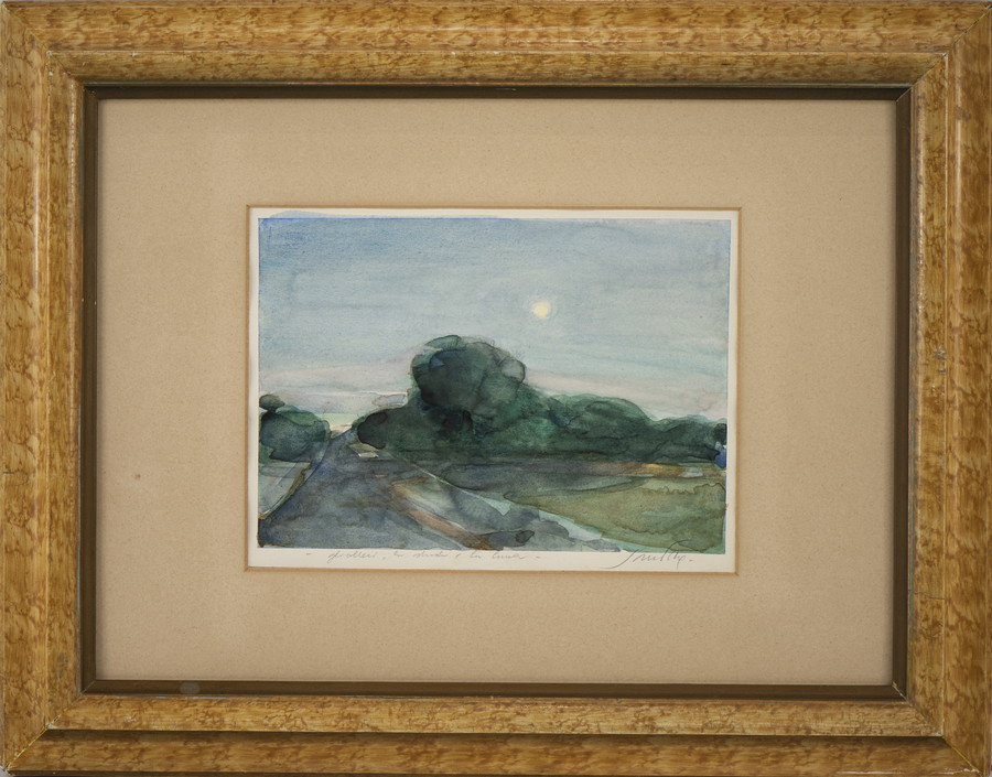 GUCCIONE PIERO (1935 - 2018) GLI ALBERI, LA STRADA E LA LUNA. Acquerello su carta. Cm 24,00 x 17,50. firma e titolo