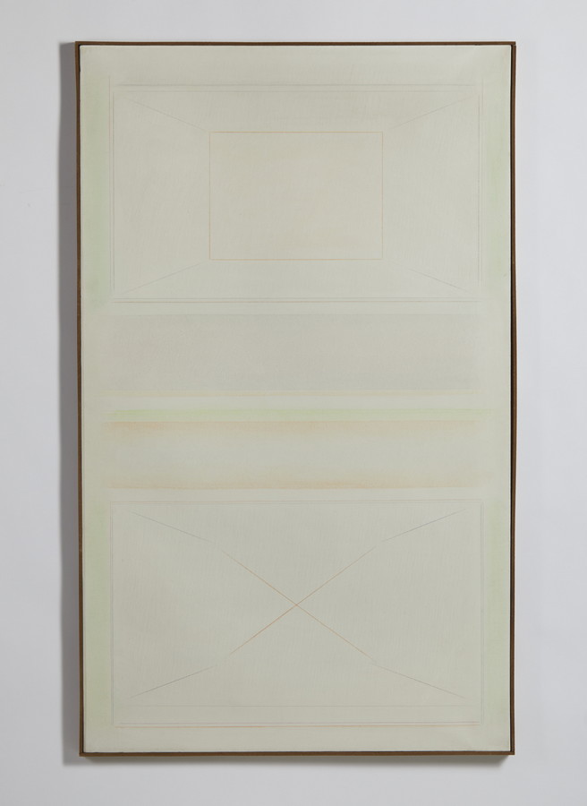 GUARNERI RICCARDO (n. 1933) RETTANGOLO CONCETTUALE. 1973. pastelli su tela. Cm 85,00 x 140,00. sul retro: titolo, firma e data