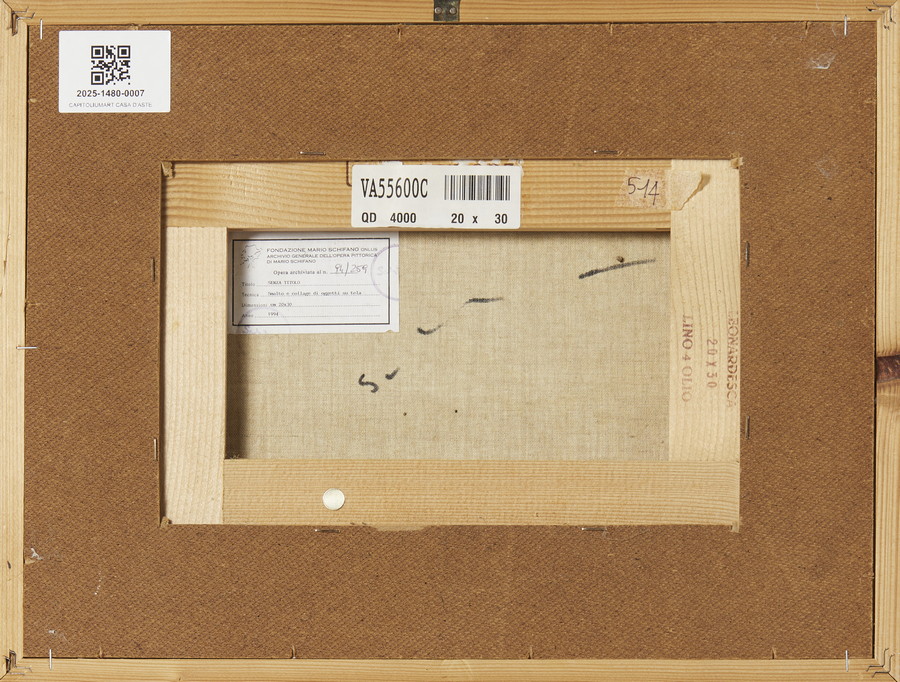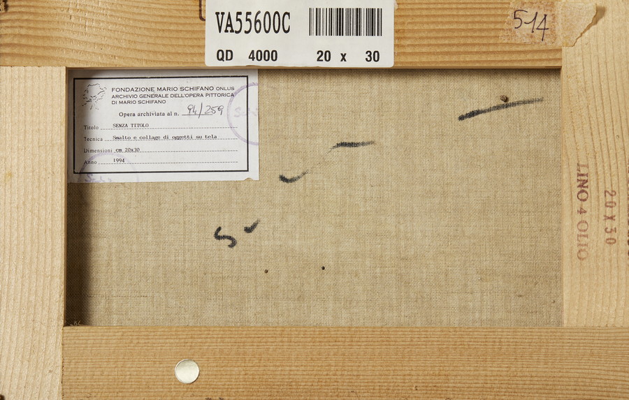 L'opera è accompagnata dal certificato di archiviazione dell'Archivio Mario Schifano, Roma, a cura di Monica Schifano. Cornice presente