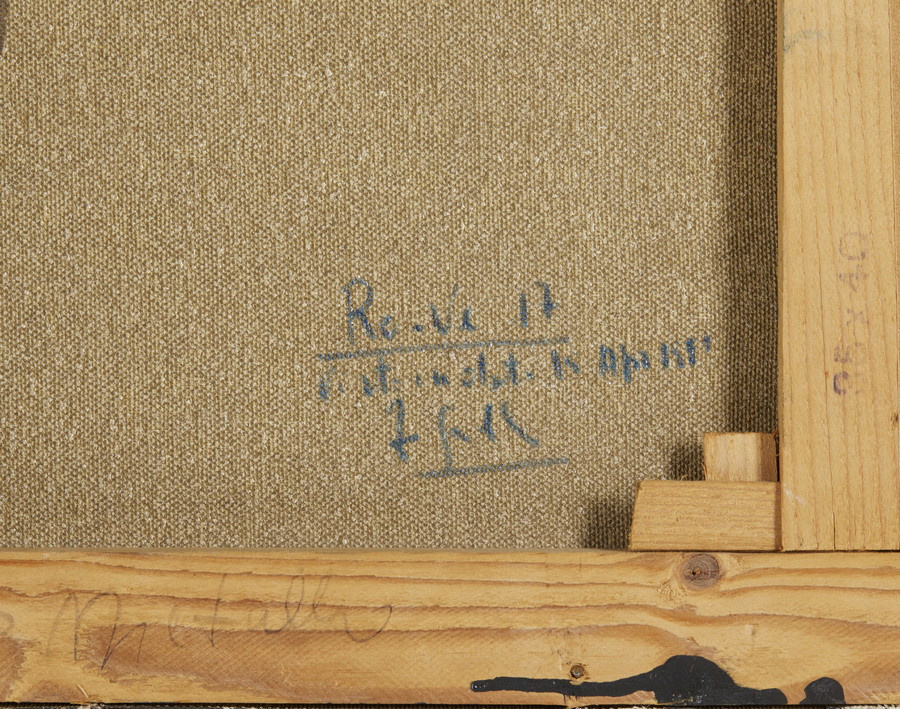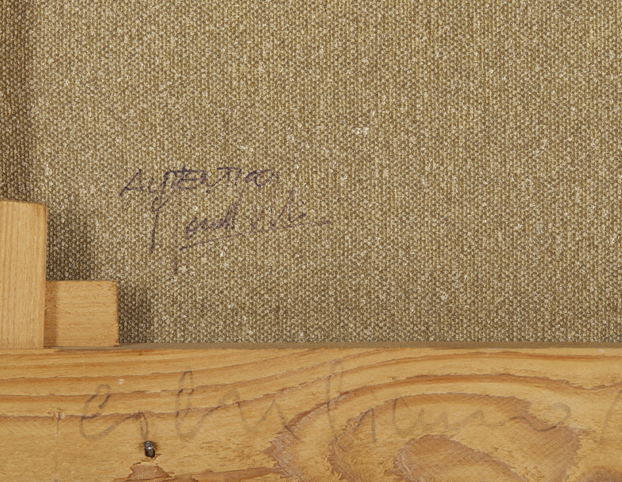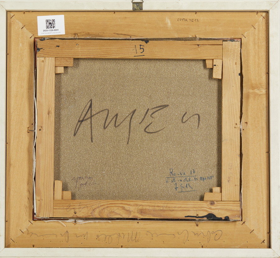L'opera è accompagnata da certificato di archiviazione dell'Archivio Franco Angeli, Roma. Cornice presente