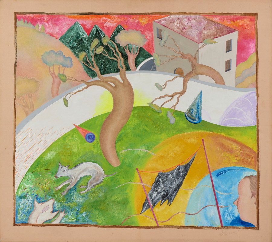 ALINARI LUCA (1943 - 2019) GRANDE PAESAGGIO, PRIMI ANNI '90. Olio e acrilico su tela applicata su tavola. Cm 90,00 x 80,00. firma