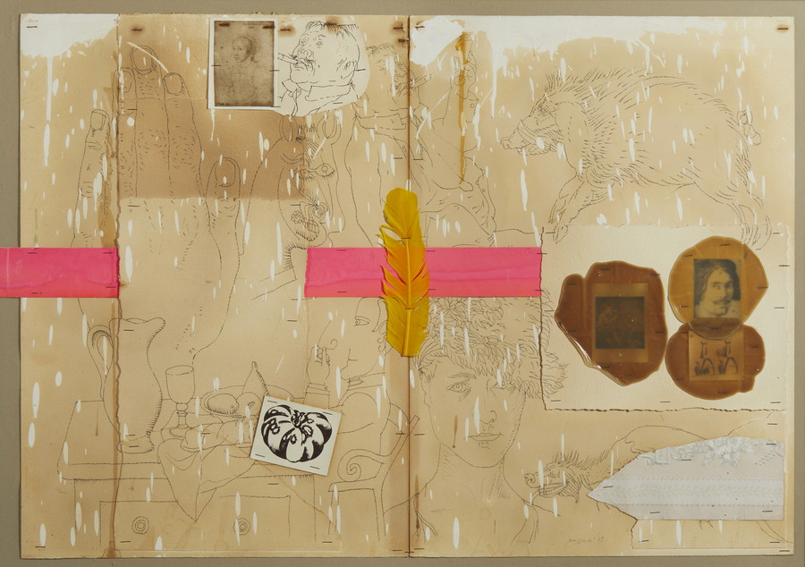 POZZATI CONCETTO (1935 - 2017) BACIA LA MANO CHE NON PUOI TAGLIARE. 1979. tecnica mista e collage su carta. Cm 100,00 x 70,00. firma e data