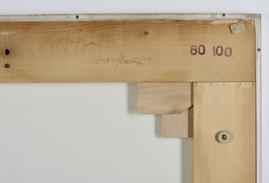 STEFANONI TINO (1937 - 2017) IL FLACONE - MEMORIA 31. 1976. Tecnica mista su tela di lino. Cm 80,00 x 100,00. sul retro: firma, data ed etichetta Studio Sant'Andrea, Milano