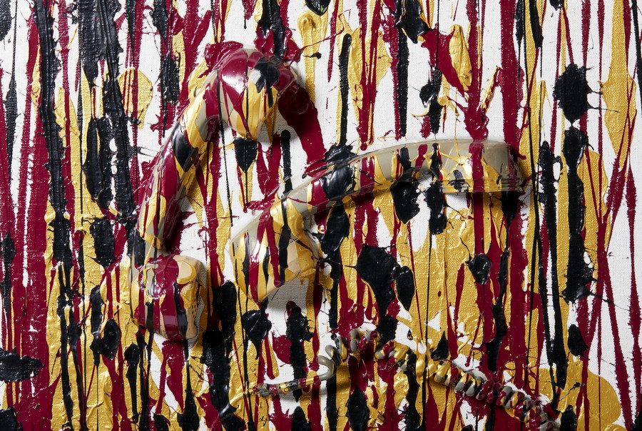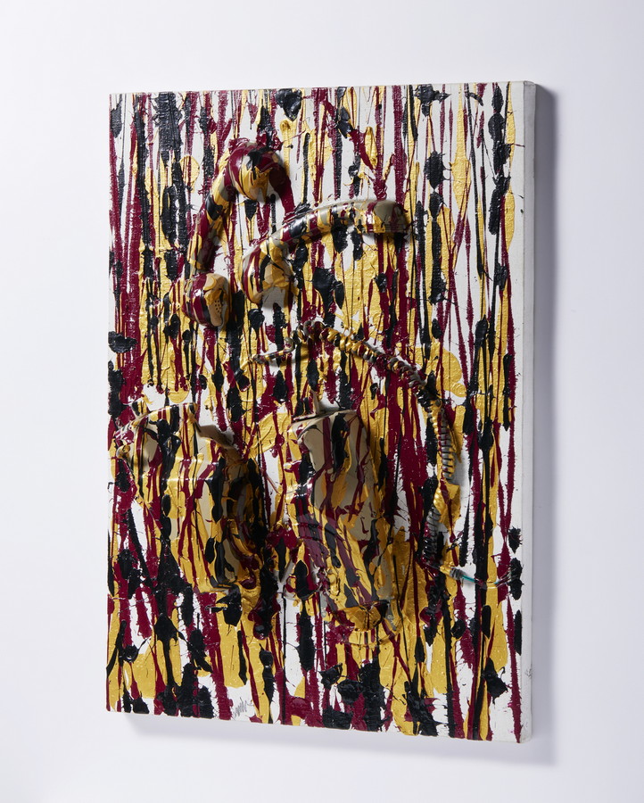 ARMAN FERNANDEZ (1928 - 2005) SENZA TITOLO. 1998. telefoni tagliati su tela e pittura acrilica. Cm 54,00 x 73,00 x 3,00. firma